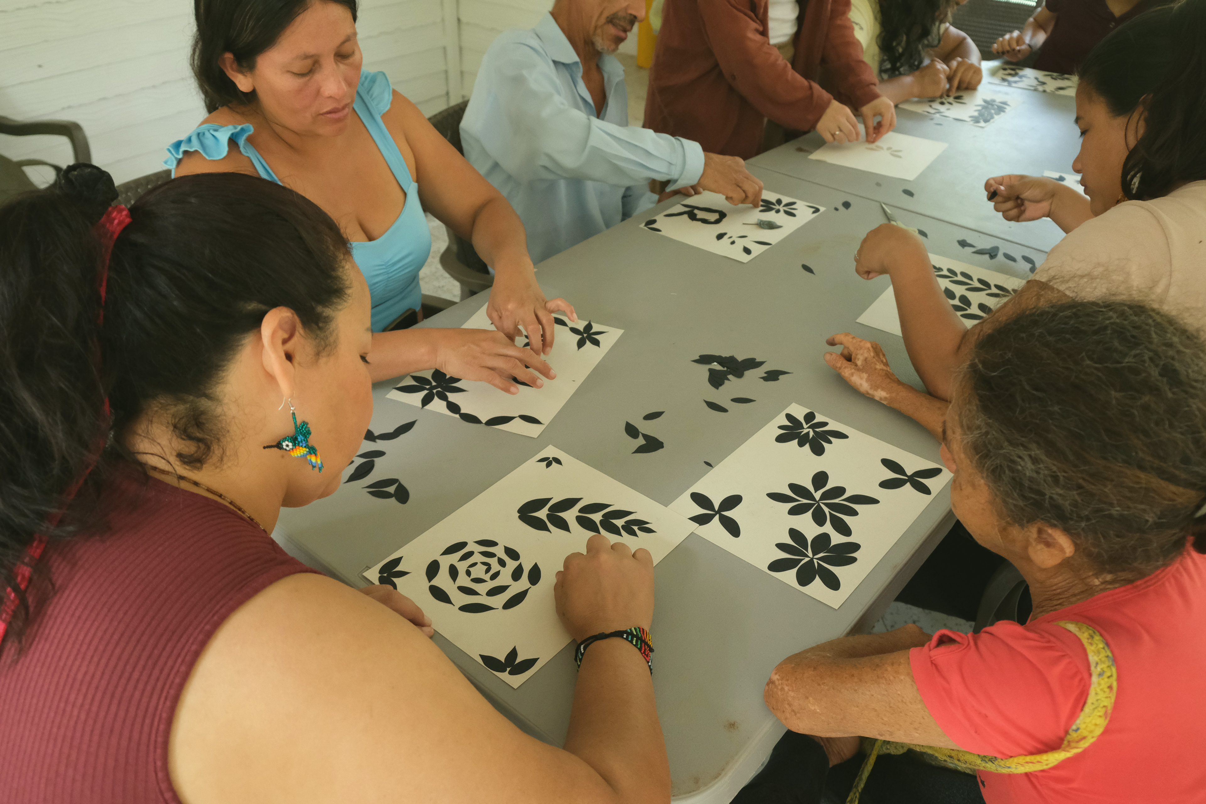 Con ellas compartimos un proceso de aprendizaje mutuo, donde los talleres de tinte y estampación se han convertido en espacios para tejer conocimiento, color y confianza.